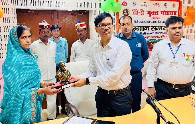 : जिलाधिकारी ने टी बी मुक्त ग्राम सभा के प्रधानों पूनम देबी,प्रभा देबी और लीलाधर को किया सम्मानित