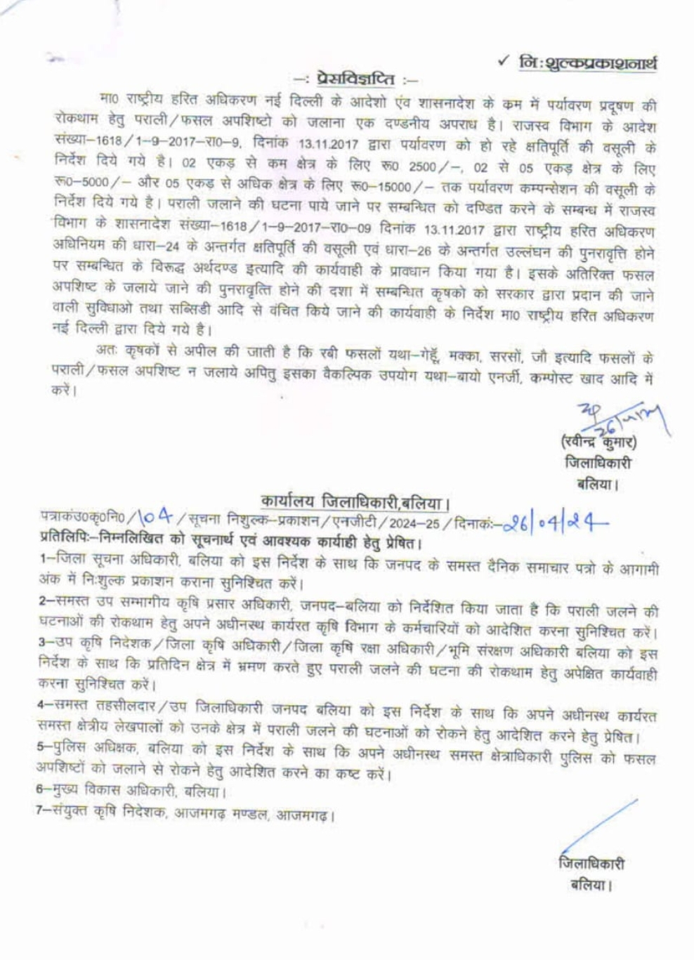 : पराली/खेतों में अवशेषों को न जलाएं वरना पकड़े जाने पर वसूली के साथ ही होगी कारवाई