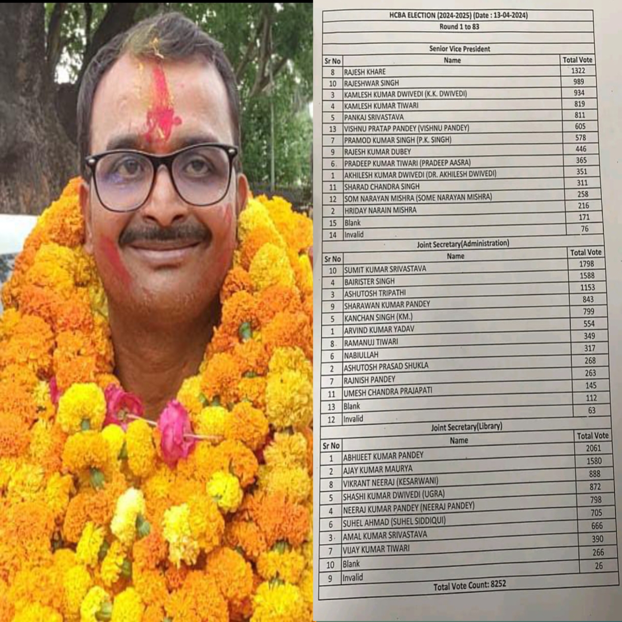 बलिया/प्रयागराज। जनपद के विकास खण्ड बेलहरी के बसुधरपाह निवासी अभिजीत पाण्डेय पुत्र स्व सुरेन्द्र नाथ पाण्डेय ने इलाहाबाद हाईकोर्ट बार एसोसिएशन 2024-25 के चुनाव में संयुक्त सचिव लाइब्रेरी के पद पर 481 मतों के जीत हासिल कर अपने गांव और जनपद का परचम लहराया। संयुक्त सचिव लाइब्रेरी पद के लिए कुल 8252 वोट पड़े जिसमें अभिजीत पाण्डेय को 2061 मत पाकर जीत हासिल किया।