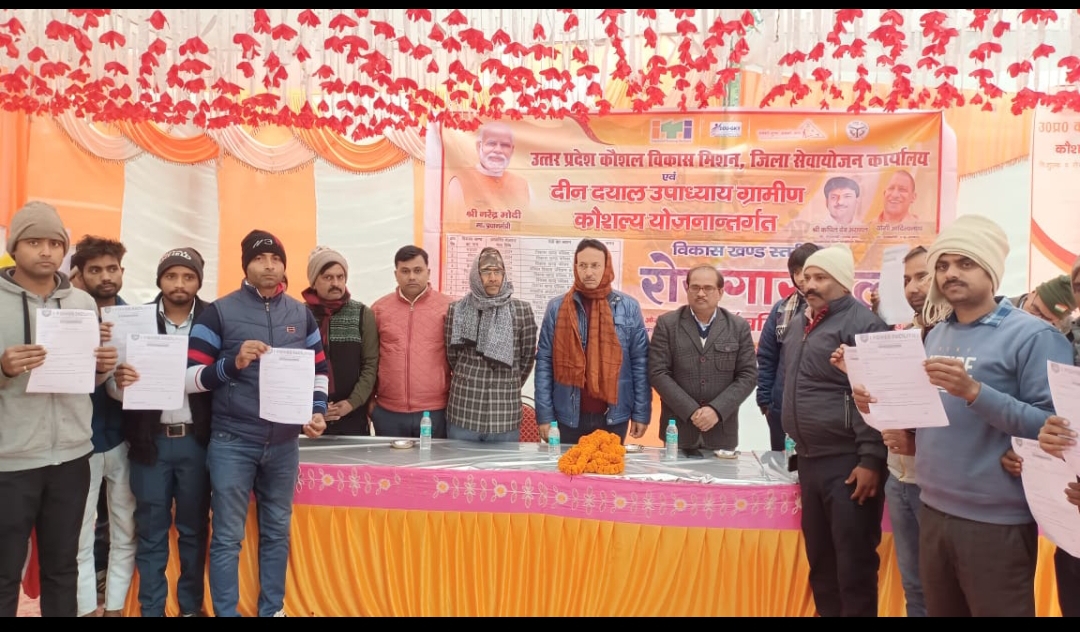 बलिया। जनपद में दीन दयाल उपाध्याय ग्रामीण कौशल्य योजना अंतर्गत उत्तर प्रदेश कौशल विकास मिशन ,राजकीय औद्योगिक प्रशिक्षण संस्थान व सेवायोजन विभाग के संयुक्त तत्वधान में विकास खंड स्तरीय रोजगार मेले का आयोजन किया जा रहा है, इसी के तहत रोजगार मेला में जय भारत मारुति , मारुति सुजुकी,डिक्सन इण्डिया लिमिटेड, एन एस डी सी,टाटा मोटर्स, लावा इण्टरनेशनल, इत्यादि कम्पनियों द्वारा आज मंगलवार को विकास खंड- दुबहड़ के प्रागंण मे रोजगार मेला का आयोजन किया गया। मेले का शुभारंभ मुख्य अतिथि ब्लॉक प्रमुख प्रतिनिधि देव नरायन सिह पुना सिंह द्वारा किया गया। मेले में कुल 316 अभ्यर्थियों द्वारा प्रतिभाग किया गया जिसमें से 151 अभ्यर्थियों का चयन किया गया। अगला रोजगार मेला विकास खण्ड- बेरुआरबारी में कल बुधवार को आयोजित होगा। आज इस अवसर ज़िला समन्वयक श्री संजय कुमार भारती, अरविंद गुप्ता मेला संयोजक , राजकीय आई टी आई बलिया ,जिला कौशल प्रबंधक विनोद कुमार पांडे , जिला कौशल प्रबंधक अरुण कुमार यादव, जिला प्रोग्राम मैनेजर , योगेंद्र यादव , सेवायोजन विभाग से नोडल पी एन यादव,रोजगार मेला प्रभारी अशोक यादव एवं अन्य लोग उपस्थित रहे।
