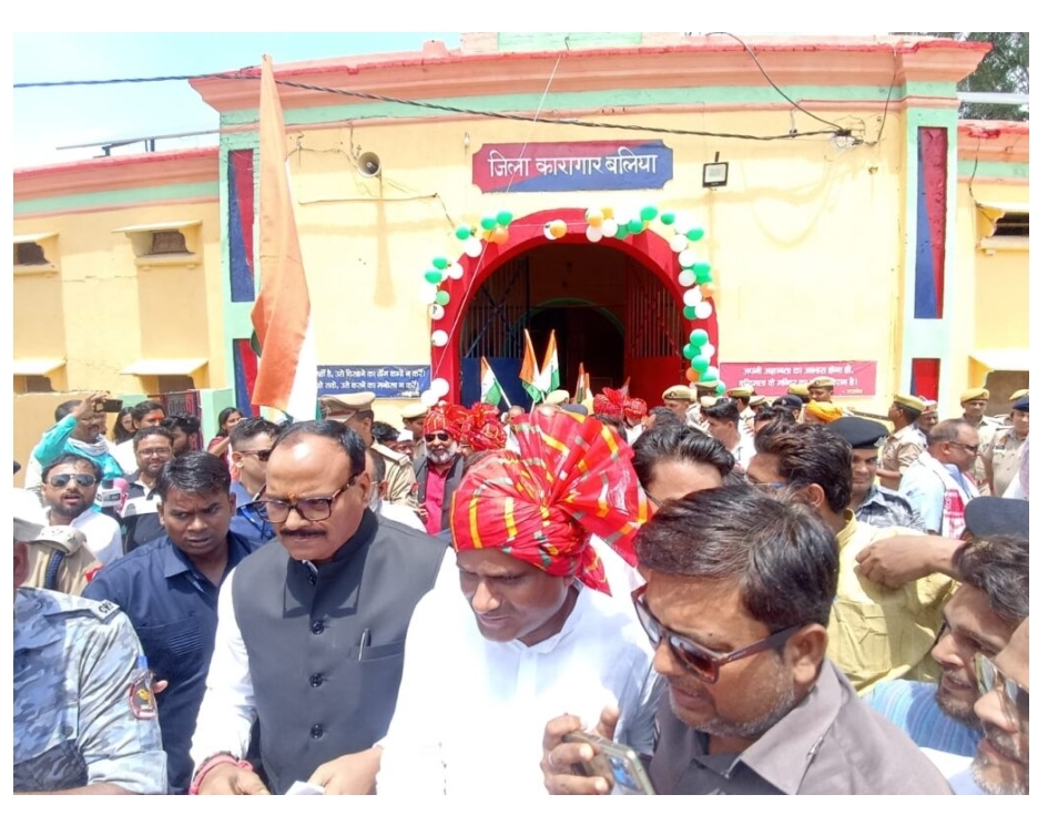 बलिया। आज जिला कारागार का फाटक तोड़कर /खोलकर स्वतंत्रता संग्राम सेनानी रुपी कैदियों को छुड़ाने पहुंचे उपमुख्यमंत्री ब्रजेश फाटक रुपी चित्तु पाण्डेय और महानन्द मिश्र के रुप में परिवहन मंत्री दया शंकर सिंह ।