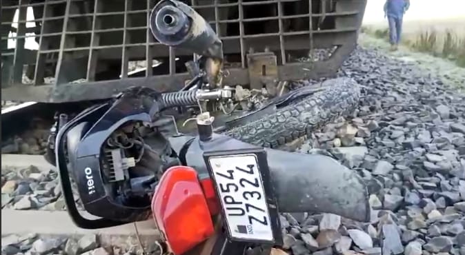 : बड़ी दुर्घटना टली,ट्रेन के इंजन में फंसी बाइक