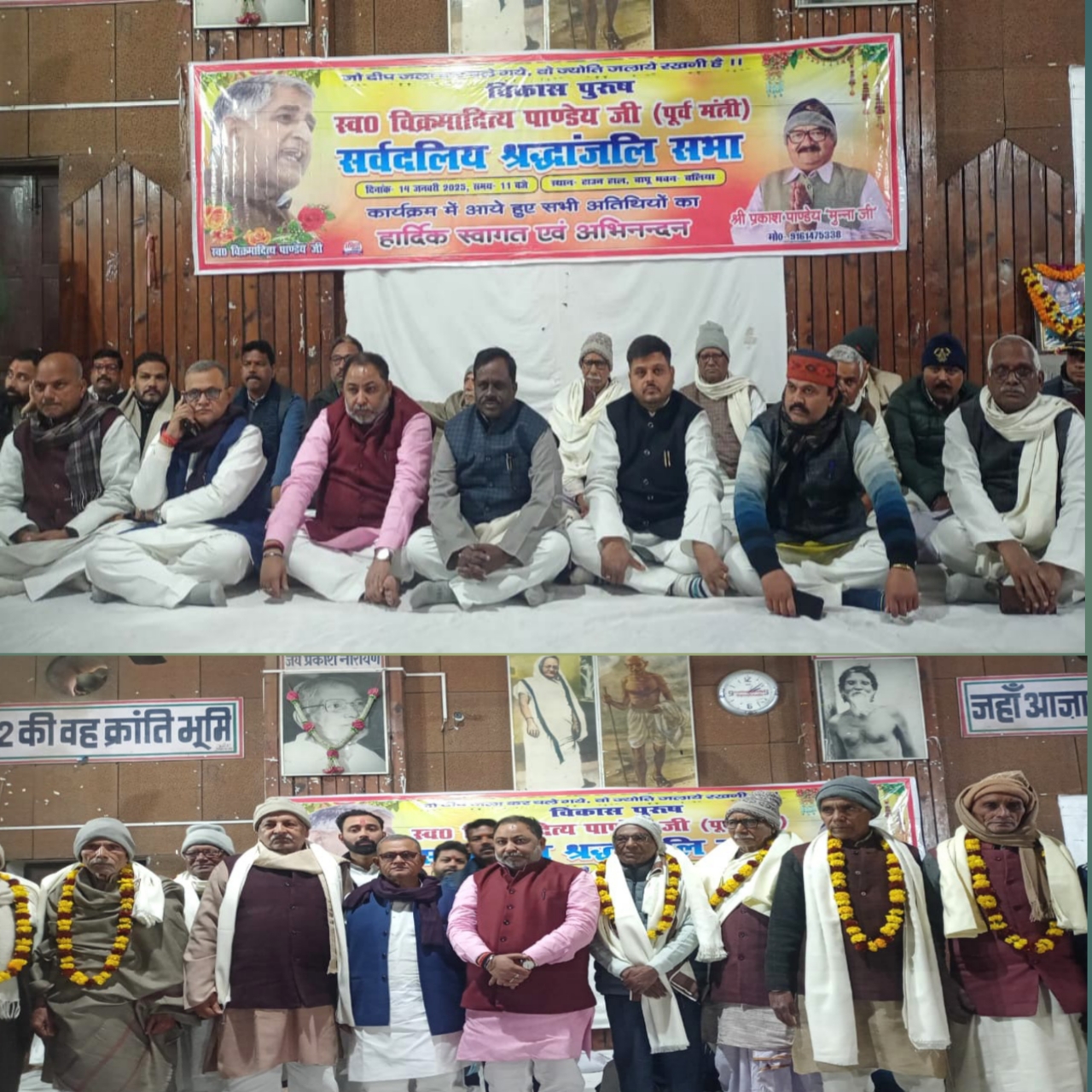 *बलिया।* जनपद की राजनीति में आदर्श पुरुष रहे स्वर्गीय विक्रमादित्य पांडेय की 18वीं पुण्यतिथि शहर के टाउन हॉल, बापू भवन में मंगलवार के दिन सर्वदलीय श्रद्धांजलि सभा के रूप में मनाई गई। इस दौरान उपस्थित विभिन्न क्षेत्रों के लोगों ने स्व0 विक्रमादित्य पाण्डेय के चित्र पर बारी-बारी से माल्यार्पण कर श्रद्धांजलि अर्पित की।