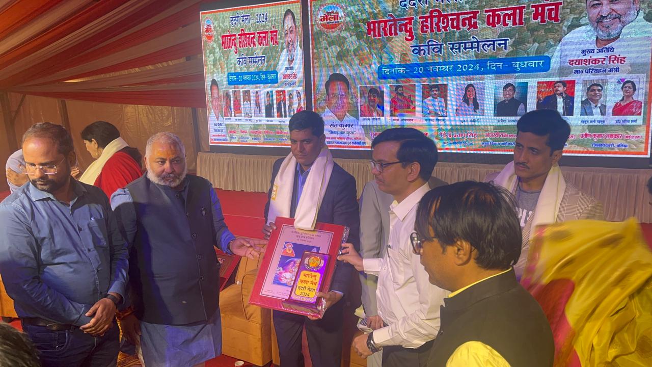 बलिया: ददरी मेले के भारतेंदु मंच पर बुधवार की रात कवि सम्मेलन का आयोजन हुआ। कार्यक्रम का शुभारंभ परिवहन मंत्री दयाशंकर सिंह ने दीप प्रज्ज्वलित कर किया। कवि सम्मेलन में एक से एक कवियों ने काव्य पाथ किया।भारतेंदु कला मंच पर कवि अरुण जैमिनी, डॉ सरिता शर्मा, स्वयं श्रीवास्तव, गजेंद्र प्रियांशु, भुवन मोहिनी, महबूब अली "महबूब" सर्वेश अस्थाना तथा विकास बौखल ने अपनी शानदार प्रस्तुति दी। कवि सम्मेलन में ही ददरी मेला-2024 का लोगो एवं थीम जारी किया गया। इस अवसर पर जिलाधिकारी प्रवीण कुमार, मुख्य विकास अधिकारी ओजस्वी राज, अपर जिलाधिकारी डीपी सिंह, मुख्य राजस्व अधिकारी त्रिभुवन, एसडीएम आत्रेय मिश्रा सहित अन्य अधिकारी व लोग मौजूद थे।