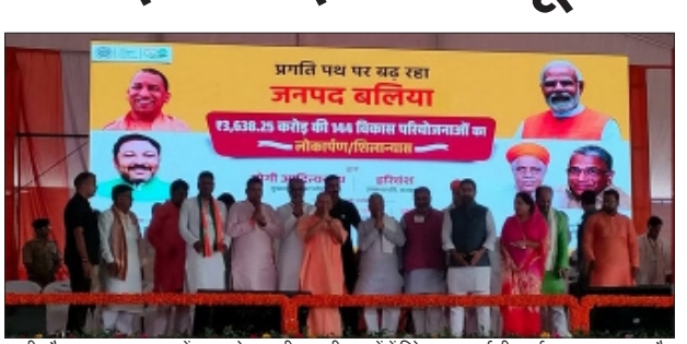 बलिया।प्रदेश के मुख्यमंत्री योगी आदित्य नाथ आज लोलनायक जय प्रकाश नारायण के गांव सिताब दियारा के जय प्रकाश नगर पहुंच कर किया क ई परियोजनाओं का शिलान्यास व लोकार्पण ,3638.25 करोड़ की 144 विकास परियोजनाएं जिनमें जल जीवन मिशन के अन्तर्गत सतही जल आधारित तीन परियोजनाएं,50 विस्तरों वाला चिकित्सालय,सुखपुरा,नरही और जय प्रकाश नगर में ,कोतवाली व पुलिस लाईन में हास्टल,नवानगर में राजकीय आई टी आई ,जी जी आई सी इब्राहिमाबाद में बाउंड्रीवाल,के अलावा कस्तूरबा गांधी विद्यालय चिलकहर में हास्टल और नसीरपुर तथा पर्वतपुर में पेयजल के साथ ही अन्य क ई योजनाओं का लोकार्पण व शिलान्यास किया। बनारस के लिए आने जाने में सुविधा के लिए राज्य सड़क परिवहन निगम की तीन बसों का परिचालन शुरु किए जाने का भी उन्होंने उल्लेख किया। 2.55 से लगभग एक घंटे विलम्ब से 3.55 पर हेलीकाप्टर से मुख्यमंत्री उतर के सीधे प्रभावती देबी सामुदायिक स्वास्थ्य केन्द्र पर पहुंचे और विभिन्न परियोजनाओं का लोकार्पण व शिलान्यास किया।